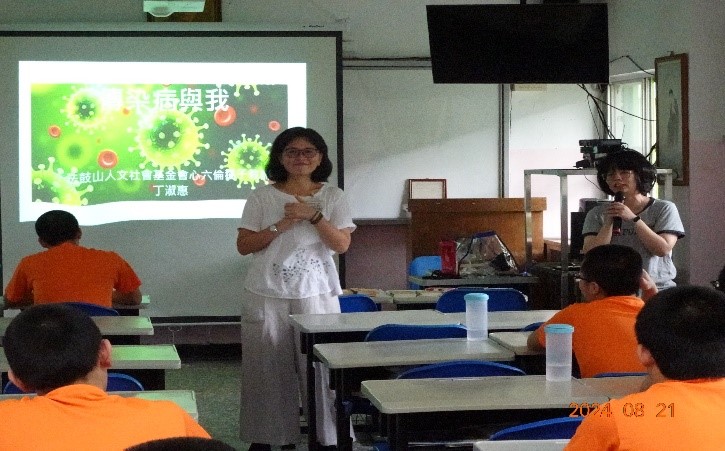 活動名稱:愛學習成長營主辦單位:臺灣更生保護會臺北分會活動時間:113年8月21日 14:10-15:30來賓:2人 少年:28人活動說明:法鼓山人文社會基金會丁淑惠講師講述藉由認識傳染病的形成,進而檢視自己的日常,以成就健康的人生。